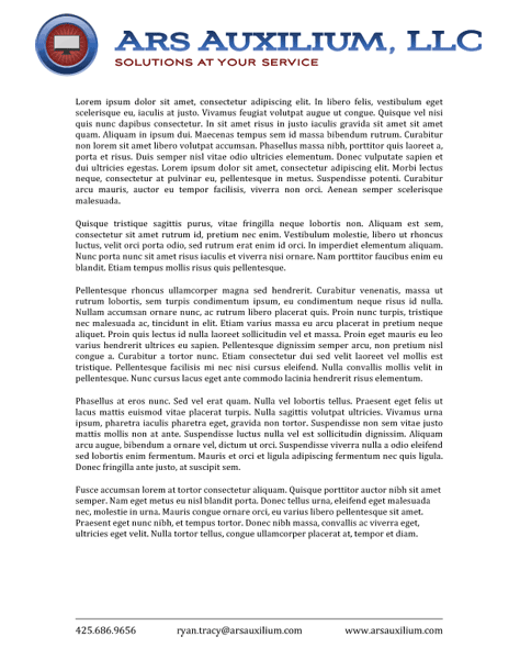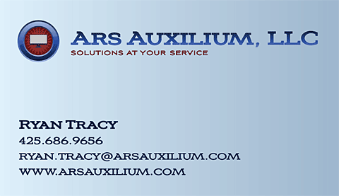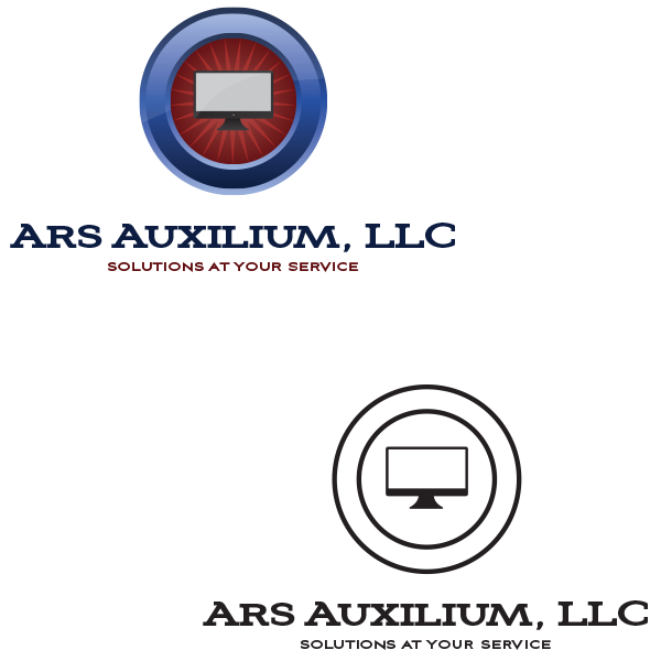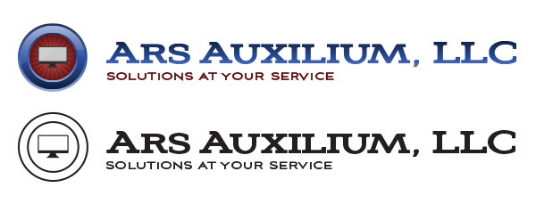Logo and printed collateral materials created for a start-up computer support and consulting firm, Ars Auxilium, based out of Edmond, Washington.